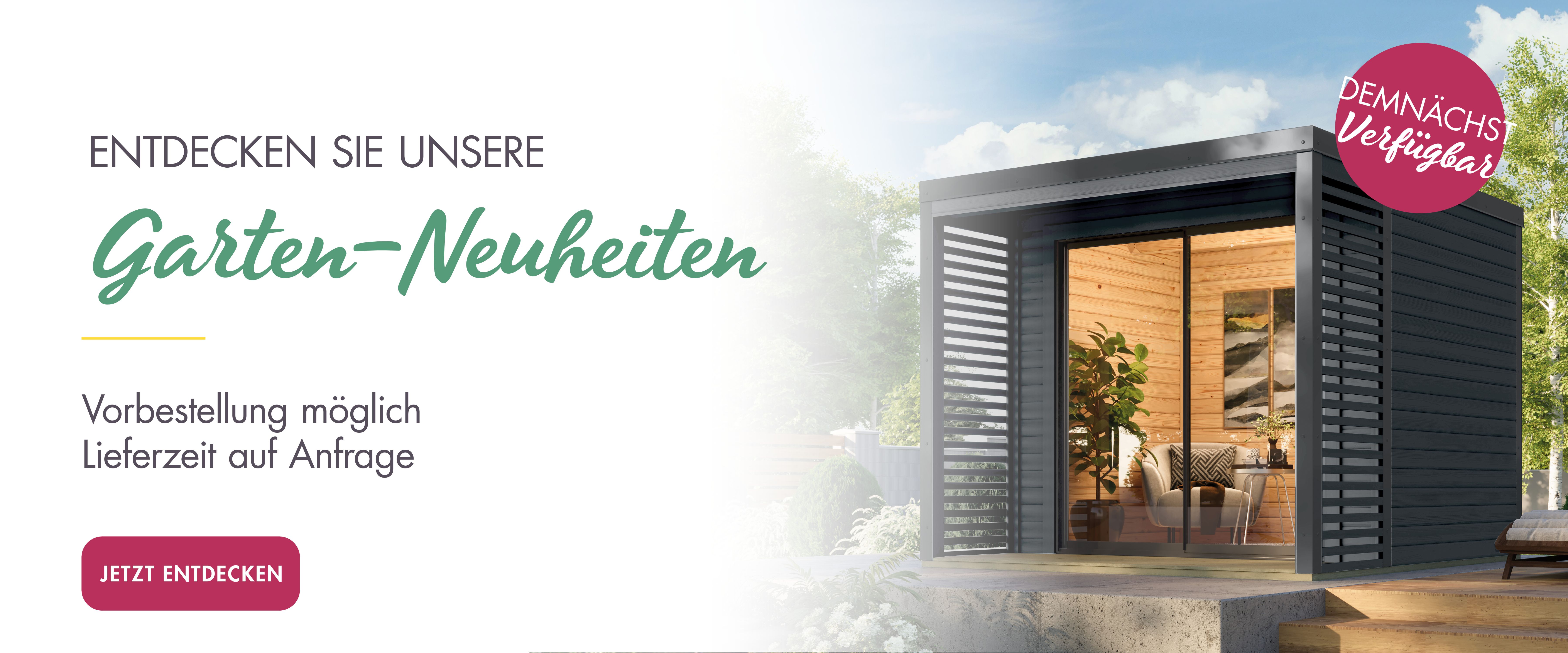 Dazu gehören Gartenhäuser, Pavillons, Terrassenüberdachungen, Pools, Carports, Spielgeräte sowie Saunen, Saunahäuser und Multifunktionssaunen.