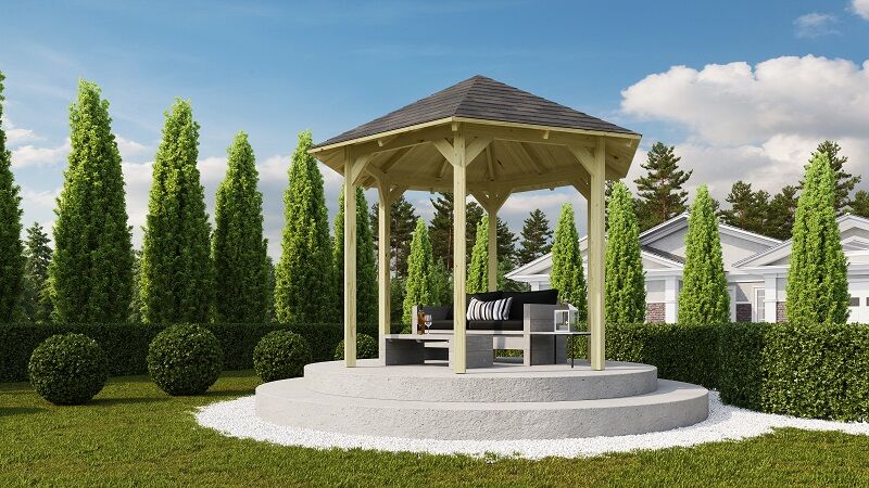 solider Pavillon mit Dach und gegossenem Fundament |