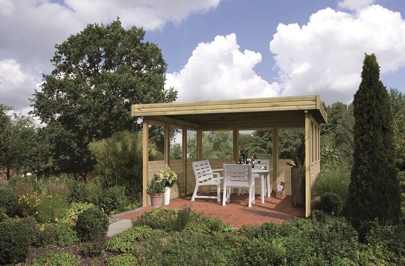 An Deinem Pavillon möchtest Du viele Jahre Freude haben, der Rohstoff Holz gewährleistet das. Ein rostender Metallpavillon mit abgewetzter Stoffabdeckung oder ein von der Sonne ausgebleichtes Kunststoffmodell lässt den gesamten Garten ungepflegt wirken. Wenn Du auf das regelmäßige Streichen von Holz verzichtest, entwickelt der natürliche Rohstoff dagegen eine unvergleichliche silbrig schimmernde Patina, die dem Garten eine romantische Note verleiht.