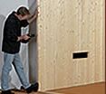 Als Nächstes werden die Wände je nach Aufbausystem montiert. Bei einer Elementbauweise werden die Wandelemente auf den Grundrahmen gesteckt und verschraubt. Die Bohlen der Massivholzsauna werden ineinander gesteckt und an den Eckleisten verschraubt. Bei einer Systemsauna werden die fertigen Wandelemente aufeinander gesteckt und an den Ecken verschraubt.