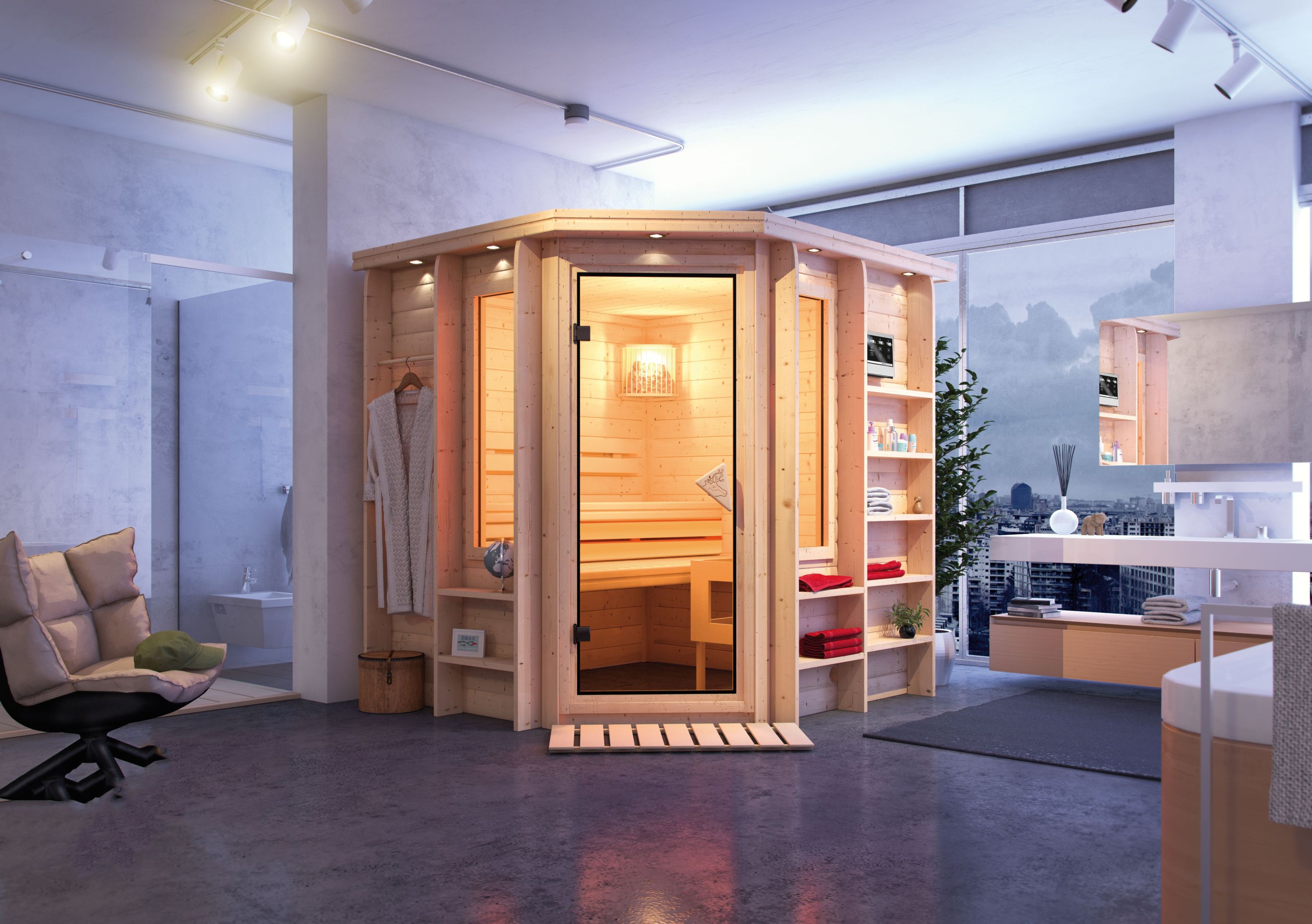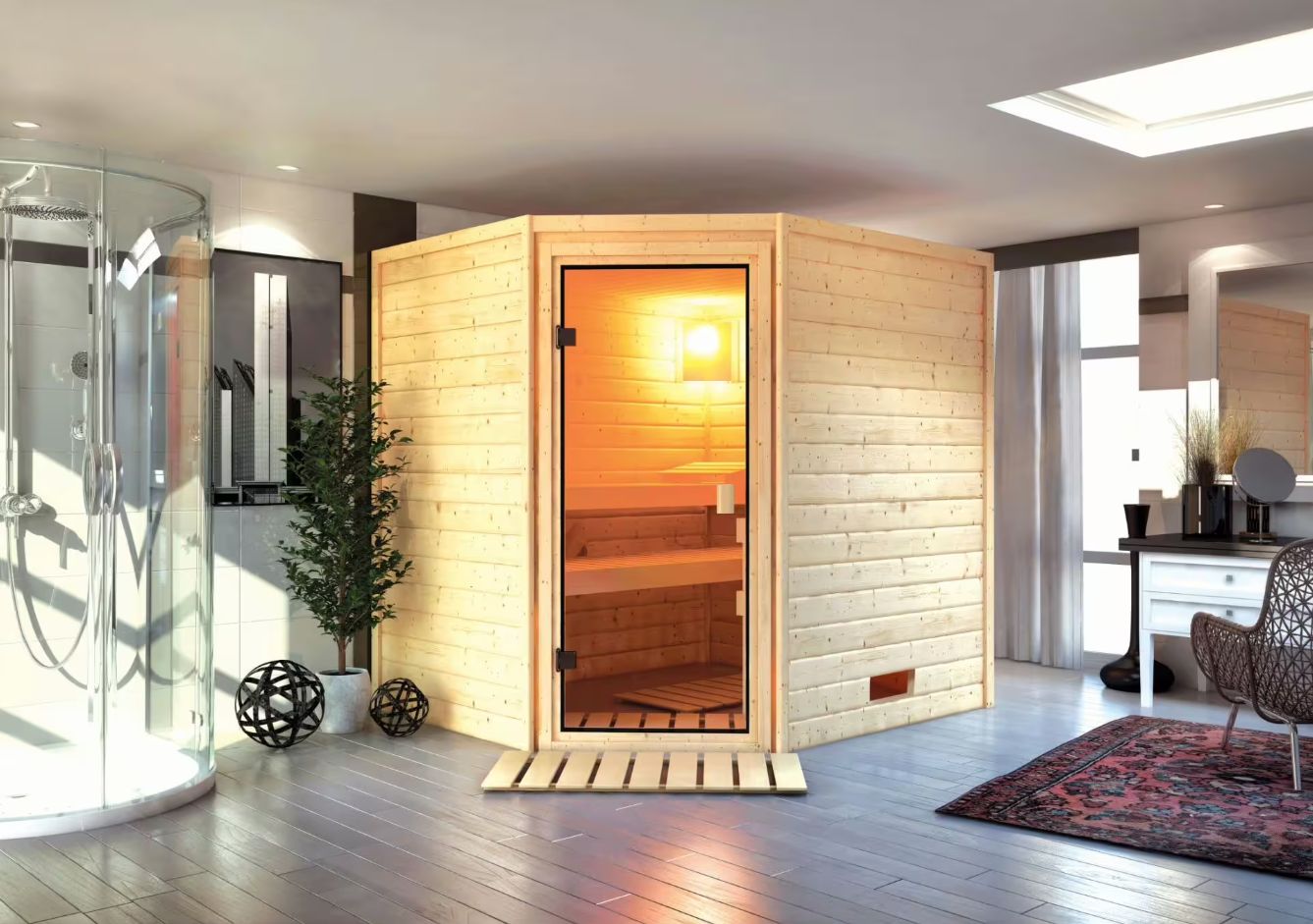 Schaue Dir unsere Auswahl an Plug & Play Saunen mit 230V an und wähle das Modell, das Deinen Vorstellungen entspricht. Im klassischen skandinavischen Look mit einer rundum verlaufenden Holzverkleidung oder modern mit einer weitläufigen Glasfront, wie bei unserer 230V Sauna Irava 3? Du hast die Wahl. Falls Du Deinen heimischen Wohlfühlort in der Raumecke installieren möchtest, findest Du auch hierfür passgenaue Innensaunen zur Auswahl.